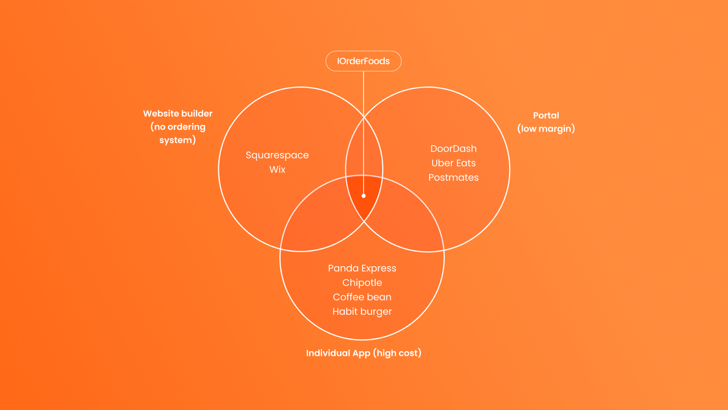 IOrderFoods differentiates itself as a competitively priced, purpose-built online-ordering platform unlike generic site builders (e.g.Squarepace and Wix) or commission-taking delivery portals (e.g.Doordash) by letting restaurants control their own fees, avoid third-party commissions, and deliver fast, easy direct ordering that lifts small-business margins.